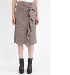 【送料無料】 秋口から着やすい素材で仕立てた、トレンドのグレンチェックのセミタイトスカート。オリジナルで作ったチェック柄は、ベージュにはピンク、グレーにはブルーが混じっている配色がポイントです。大きく波打つラッフルディテール×タイトシルエットが格段に女性らしさを引き出します。ブラウスからニットまでINしたスタイリングが楽しめます。※裏地付き ジルスチュアート/JILLSTUART スカート|スカート