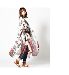 【送料無料】 まるでスカーフのような花柄をのせたガウン。シルエットが美しく、歩くたびに軽やかな生地が優雅に揺らめきます。袖にも身幅にもゆとりがあり、着心地も快適。周囲と差をつけるアイテムで、普段使いにも華やかなシーンにも最適です。※柄はイメージと異なる場合がございます。 ローズバッド/ROSEBUD ROSE BUD|アウター|その他
