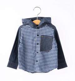 SHIPS KIDS:ギンガム×デニム フード シャツ(80 90cm)